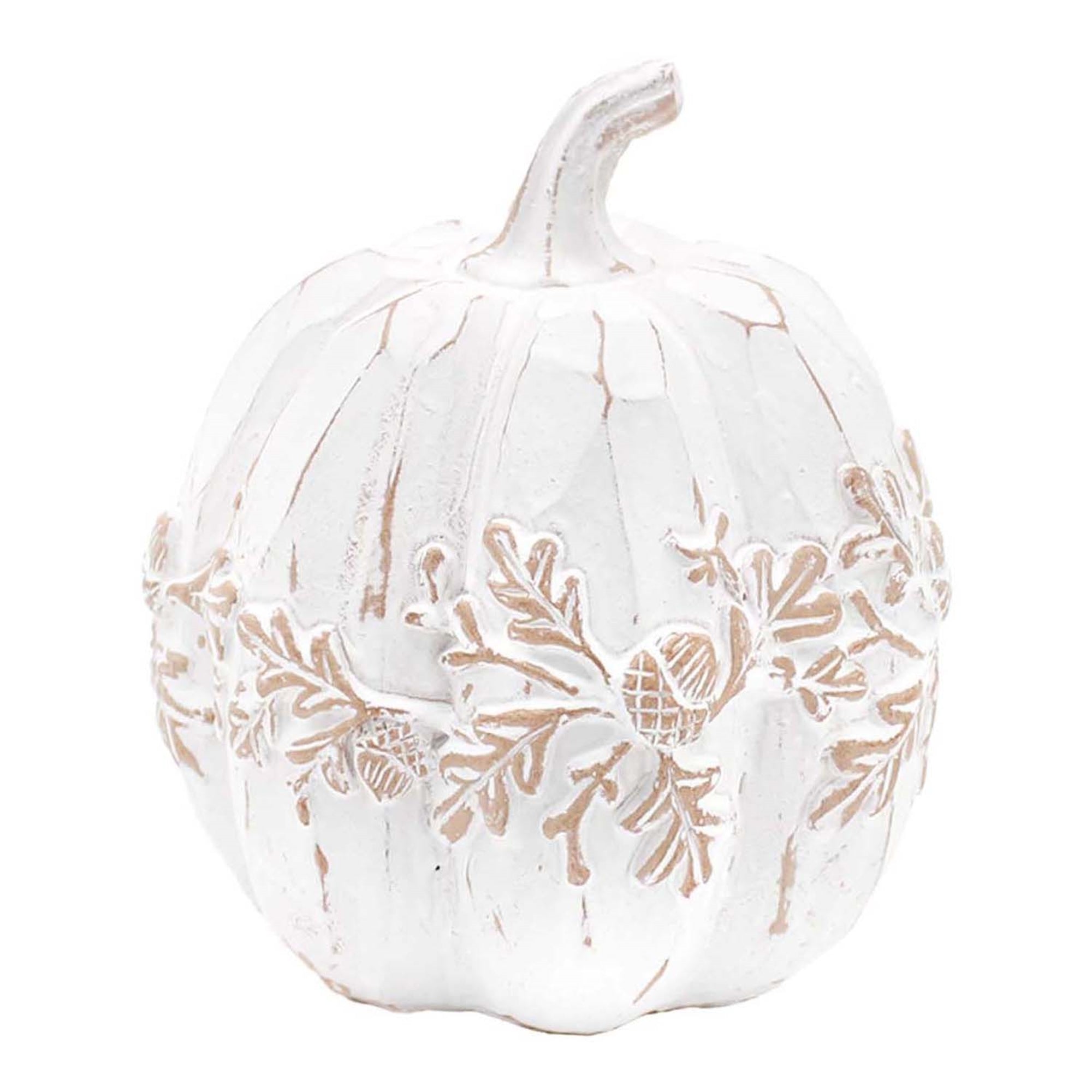 Tall Leaf Engraved White Resin Pumpkin