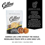 Collins Dehydrated Lemon Cocktail Garnishes add a zesty, citrus finish to cocktails, mocktails, and dishes, enhancing both flavor and presentation with artisanal quality. Perfect for elevating drinks like Gin & Tonic or adding a vibrant touch to desserts.