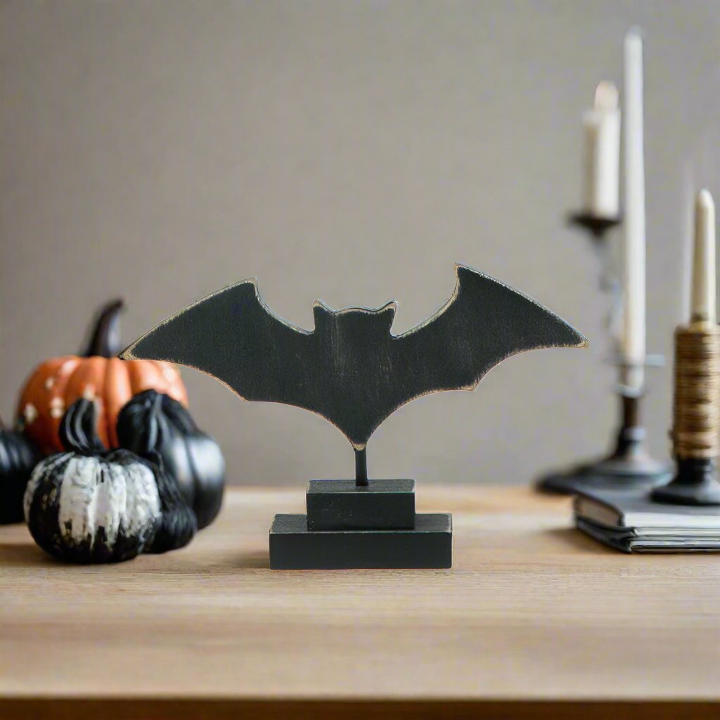 Add some spooky fun to your home decor with our 7x4 Wood Cutout Bat! This quirky and unique wooden cutout of a bat is sure to bring a playful touch to any room. Perfect for Halloween, this bat will add some character to your space.
