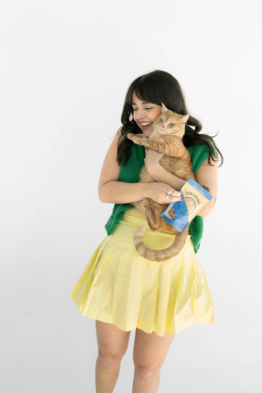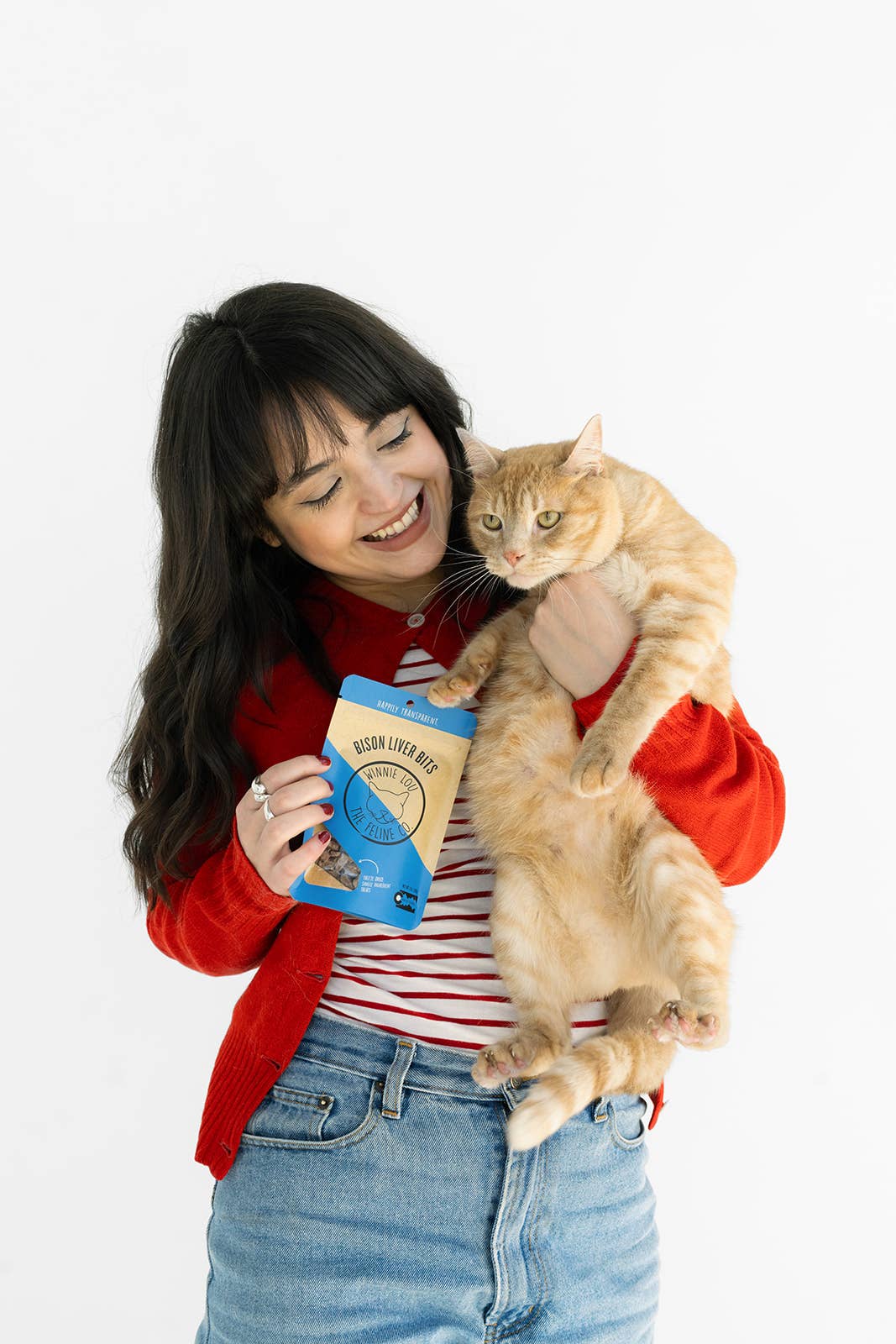 Our cat treats are single-ingredient and 100% grass-fed bison liver. Full of iron, copper, and zinc for a healthy cat. High quality protein and no added salt, sugar, glycerin, or preservatives!