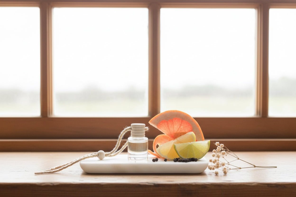 Hanging car diffuser. Each diffuser is handcrafted in small batches using 100% concentrated fragrance oil (never diluted), providing a strong, long-lasting scent throw for 45–60 days.