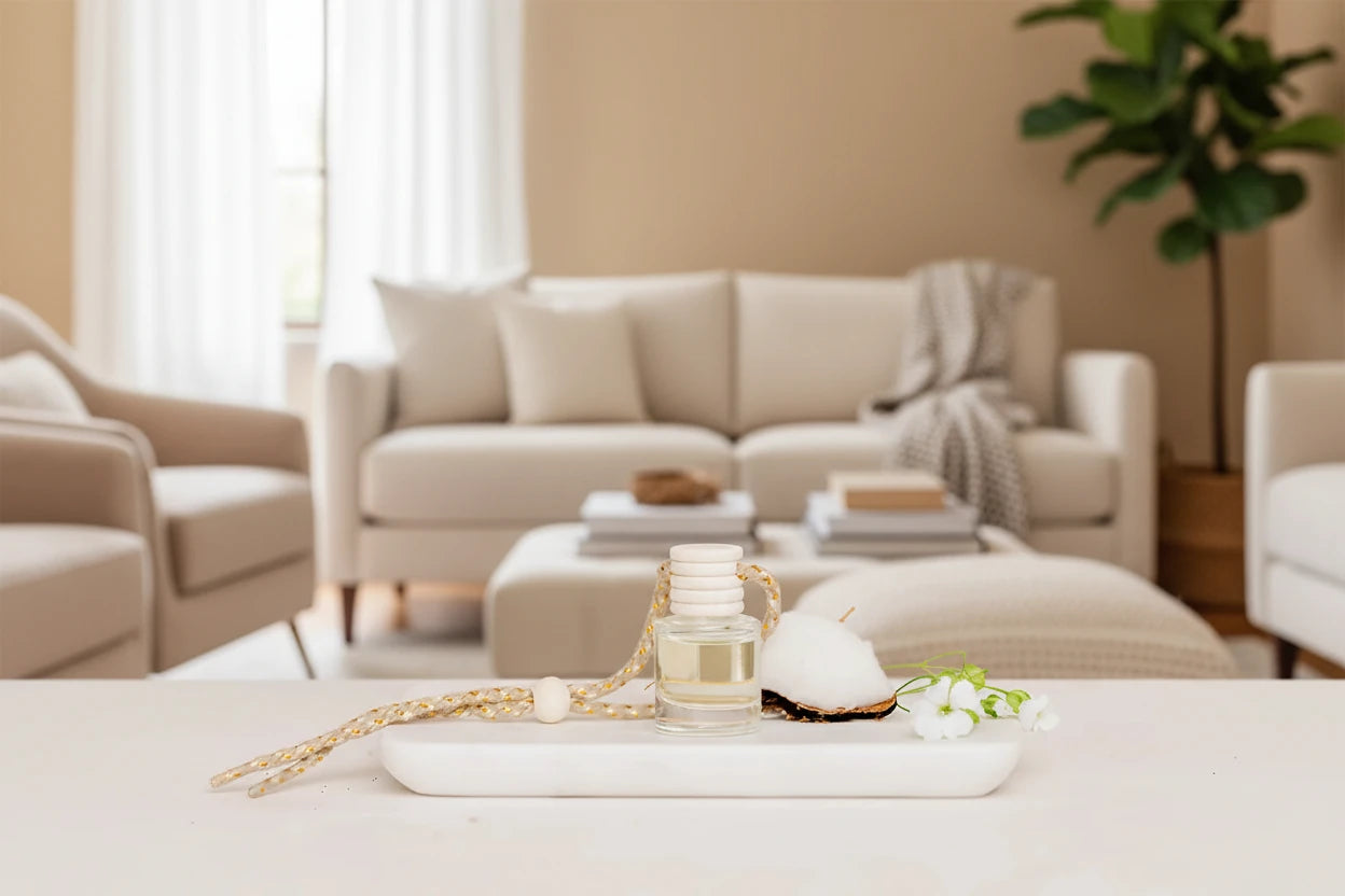 Hanging car diffuser. Each diffuser is handcrafted in small batches using 100% concentrated fragrance oil (never diluted), providing a strong, long-lasting scent throw for 45–60 days.
