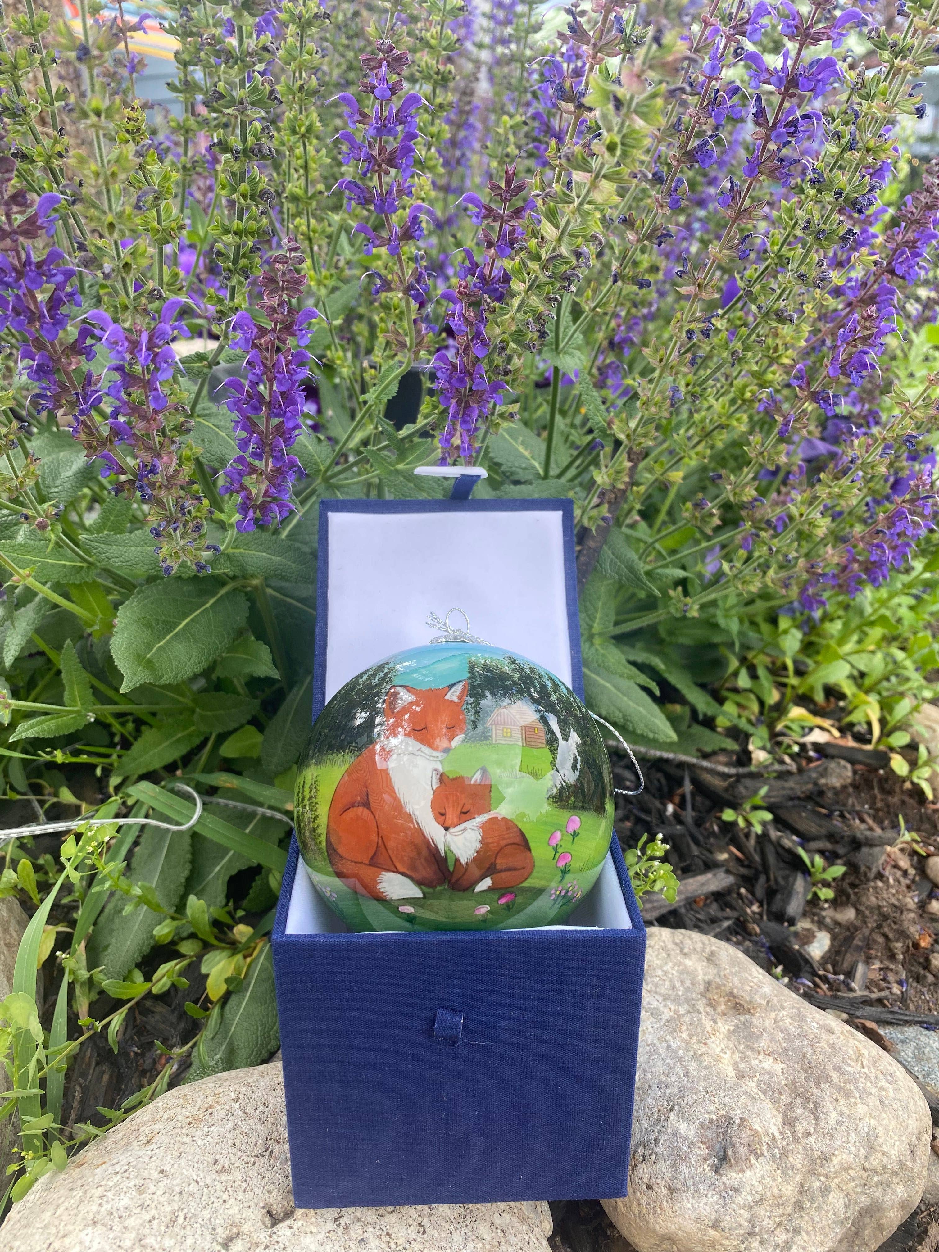 Hand-Painted Colorado Mountain Glass Ornament – Sunrise in the Rockies