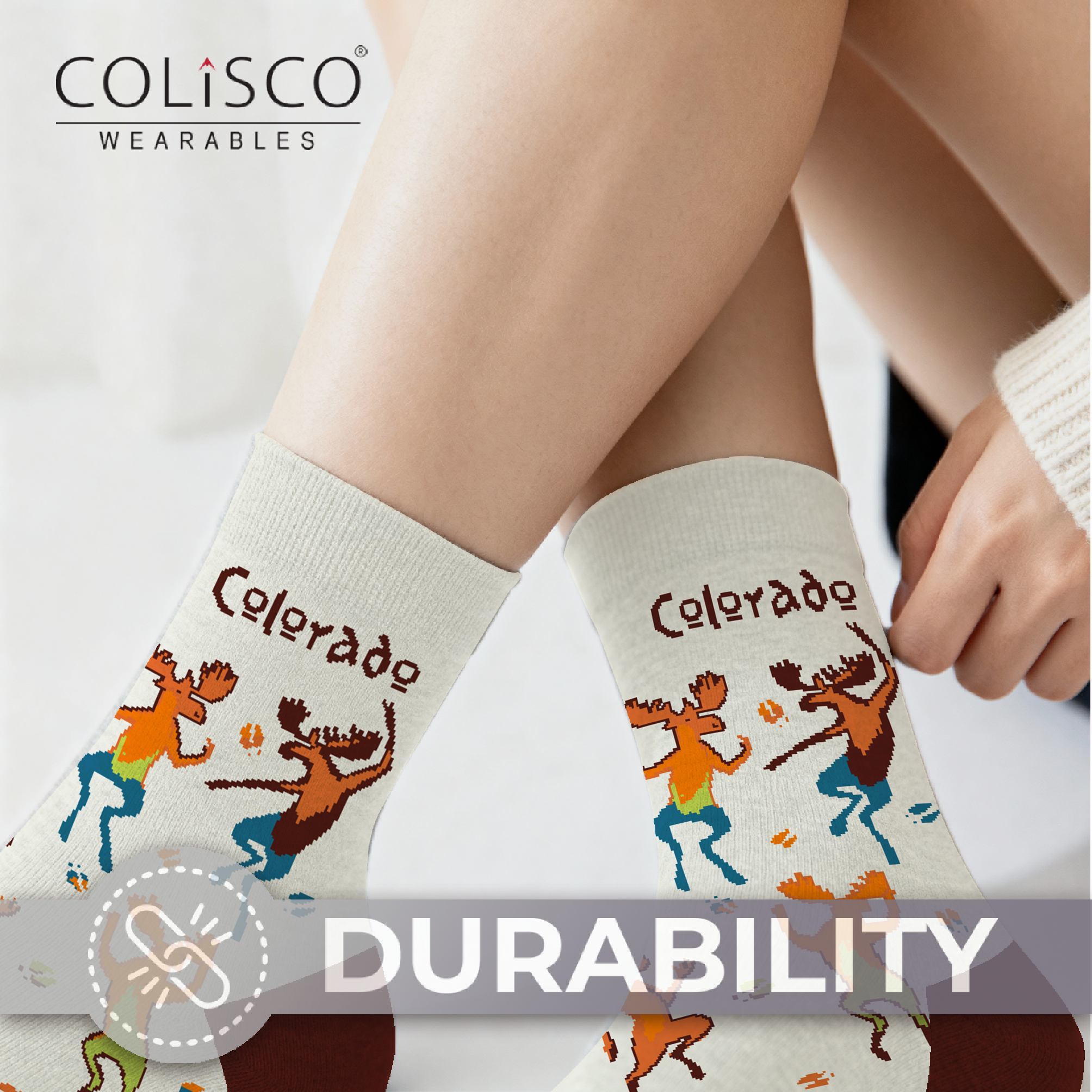 Colisco Unisex Crew Socks - Colorado Moose Dance