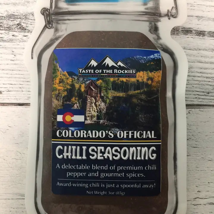 Chili Seasoning: Colorado means "red" or "scarlet" in Spanish so it makes sense our red chili be as full of flavor as Colorado itself. Comes in jar-shaped, ziplock bag, an ample 3oz.