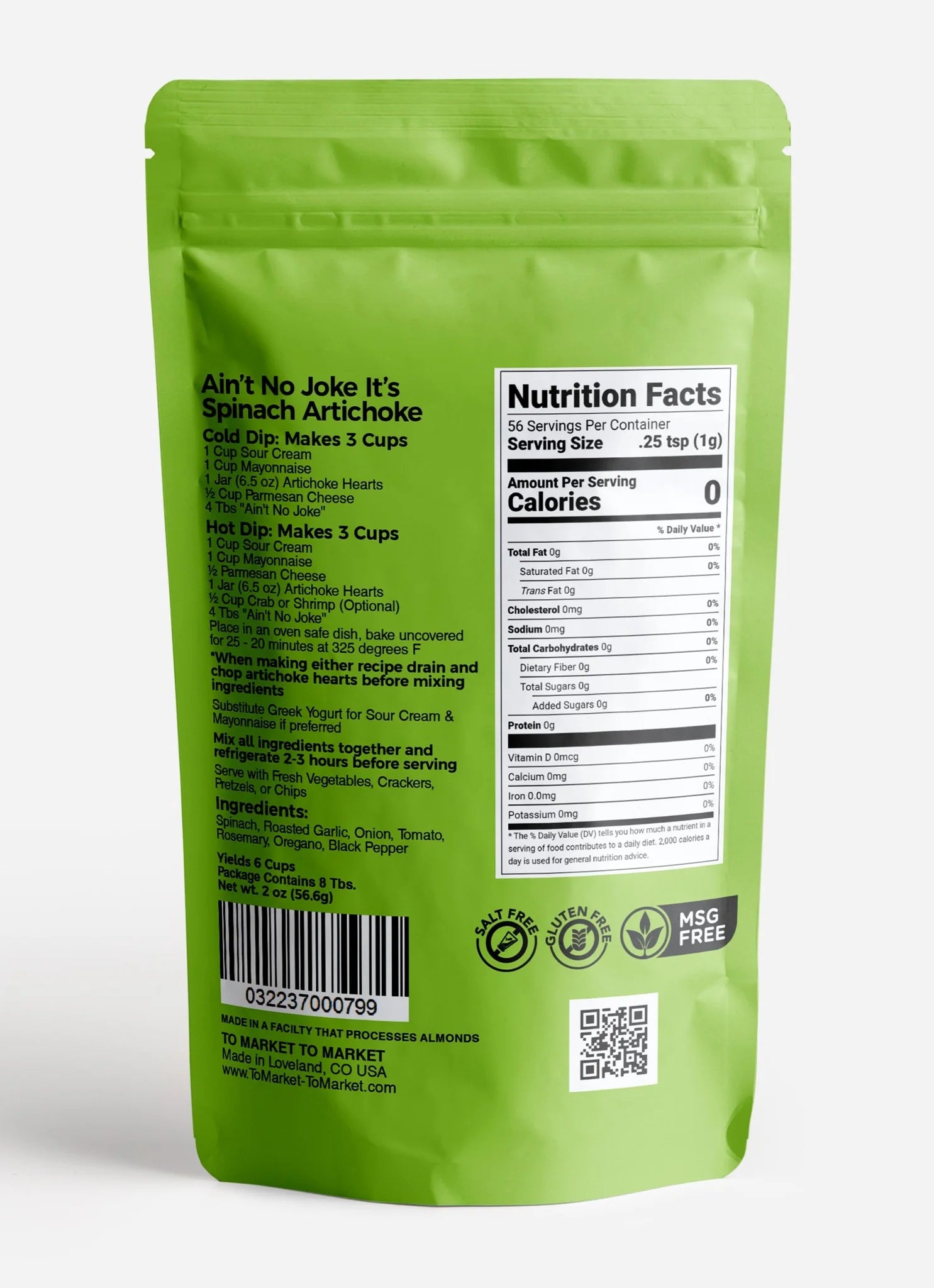 2 oz stand up zippered pouch of Spicy Green Chili Dip Mix that yields 4 Cups! Get creative with this blend, awesome seasoning to cook with!