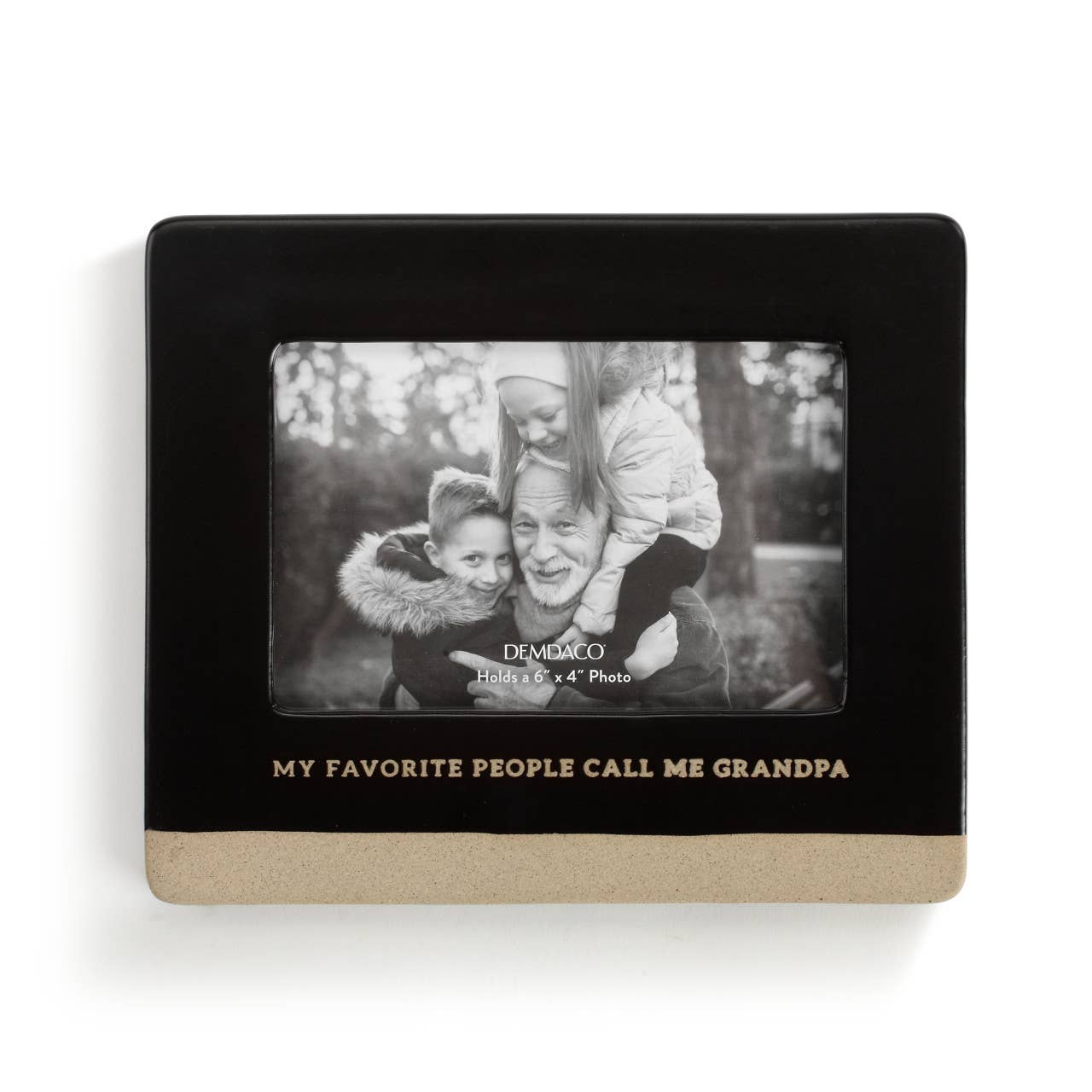 This sleek black stoneware frame declares "My favorite people call me Grandpa" with understated charm. Featuring a warm beige stripe and dual display options—easel back or wall hanger—it's perfect for any space. A playful yet meaningful gift that celebrates grandpa's most important role.