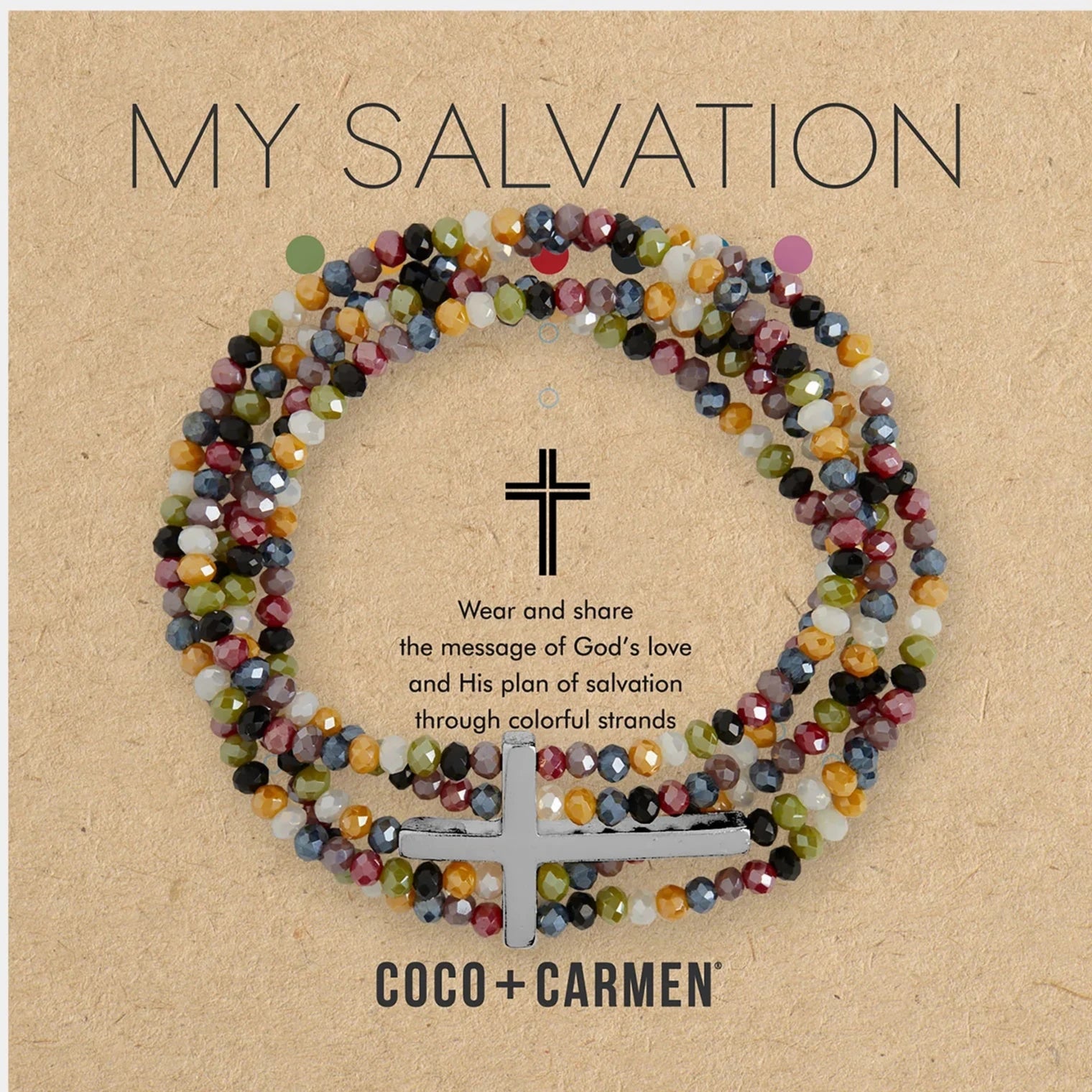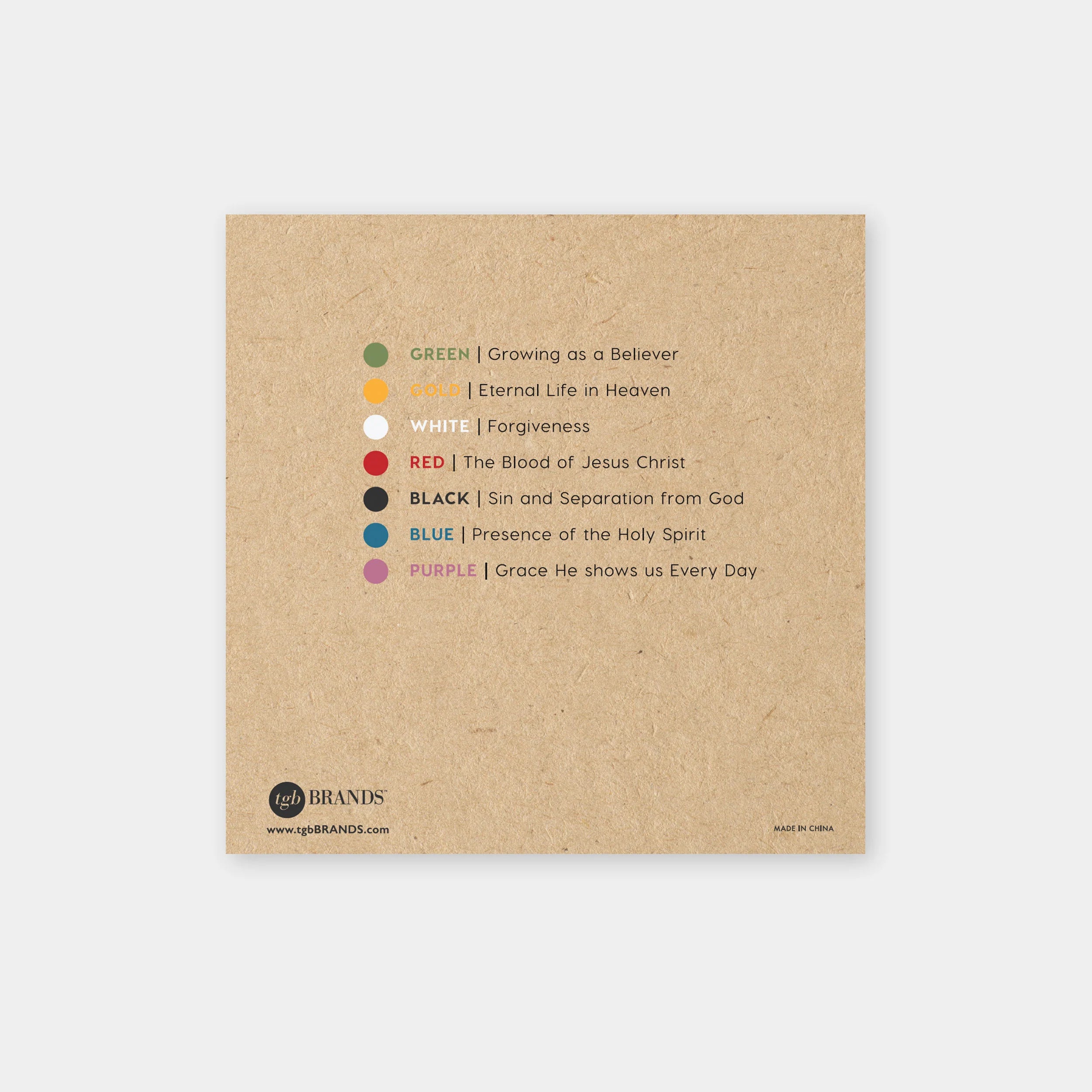 Wear and share the message of God's love and His plan of salvation through meaningful, colored jewelry. Features beads of different colors that represent His plan of salvation and a statement cross pendant. Stretch bracelet.