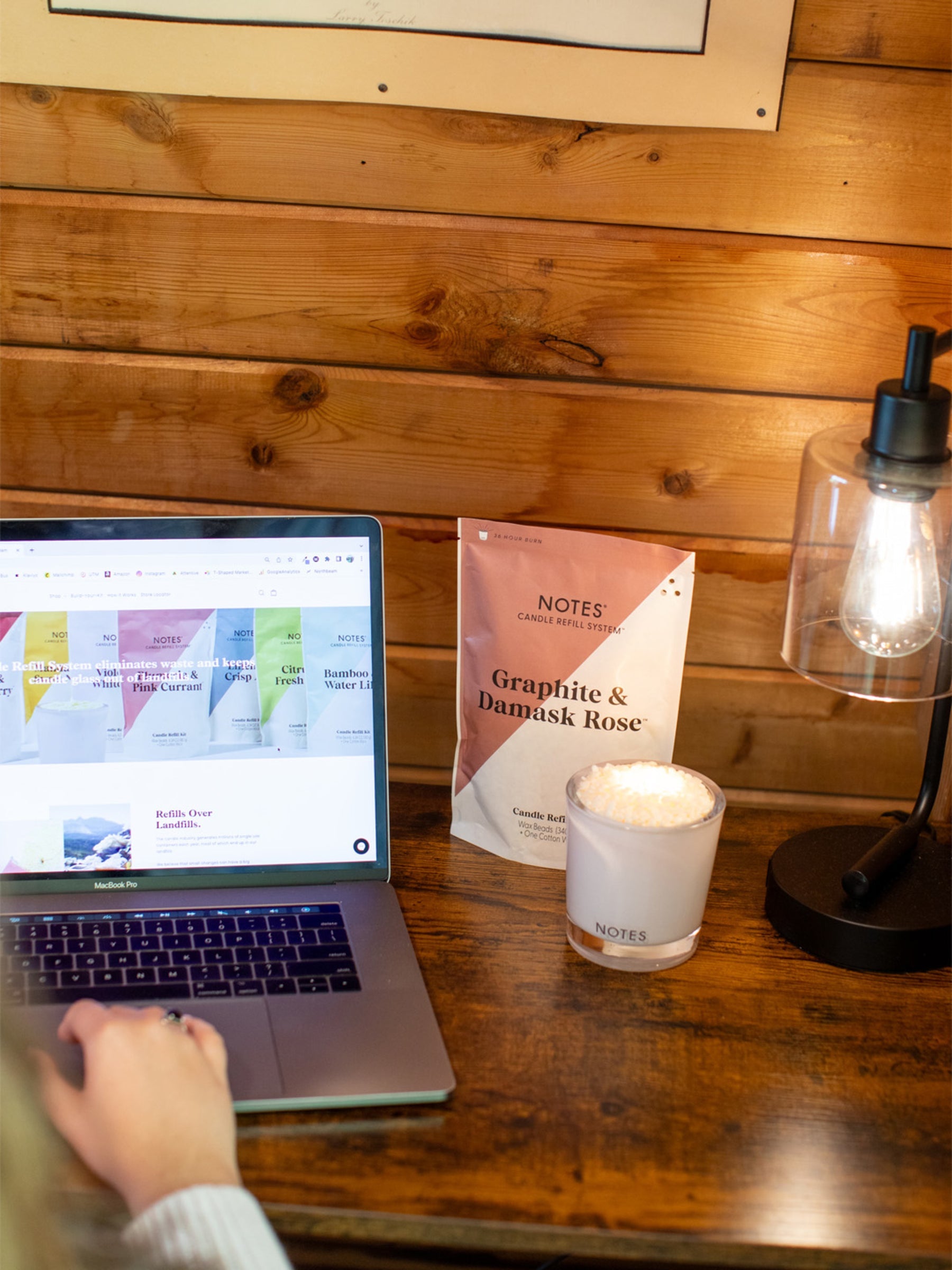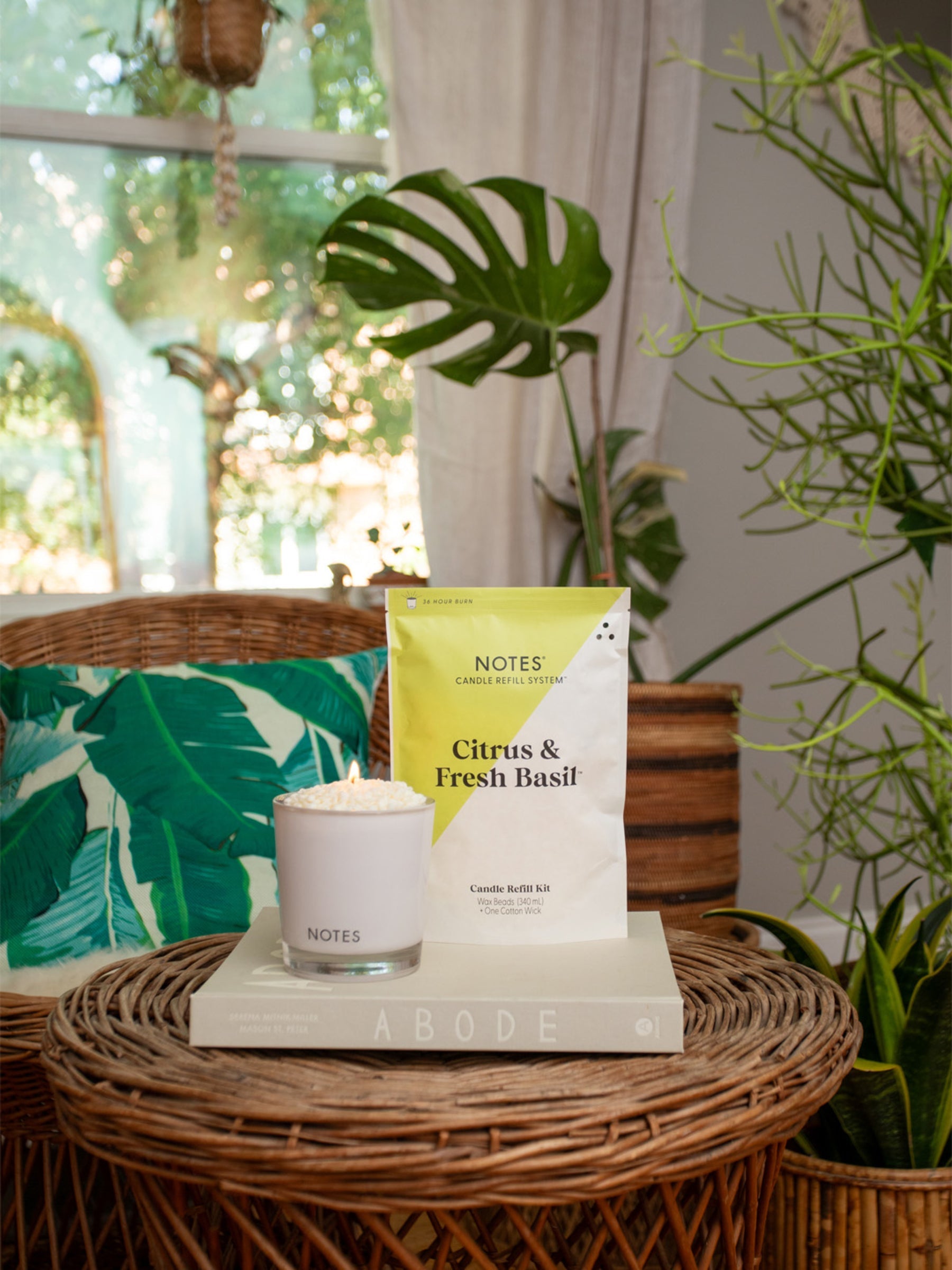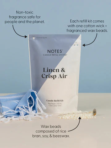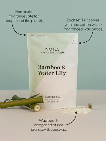Say hello to The New Way to Candle™ – making it easier than ever to choose refills over landfills. Each Candle Refill Kit includes a perfectly portioned bag of fragranced wax beads and a wick. Use this kit with your NOTES® Starter Glass and Silicone Cleanout Insert (sold separately) for room-filling fragrance you'll feel good about.