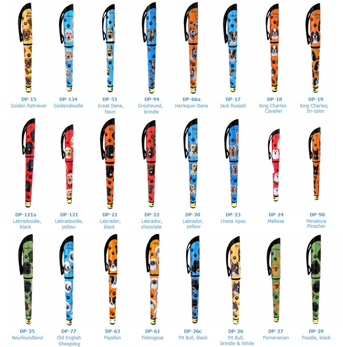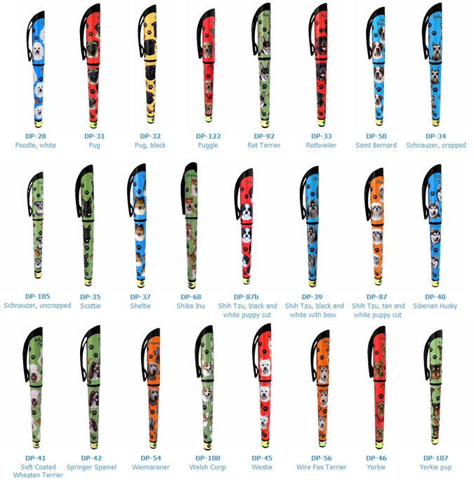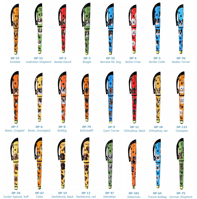 Put your thoughts on paper with our gel pen. Each pen has canine artwork wrapped around it with paw prints running along the clip. The name of each breed is written on top. These adorable pens make writing a fun and playful experience.