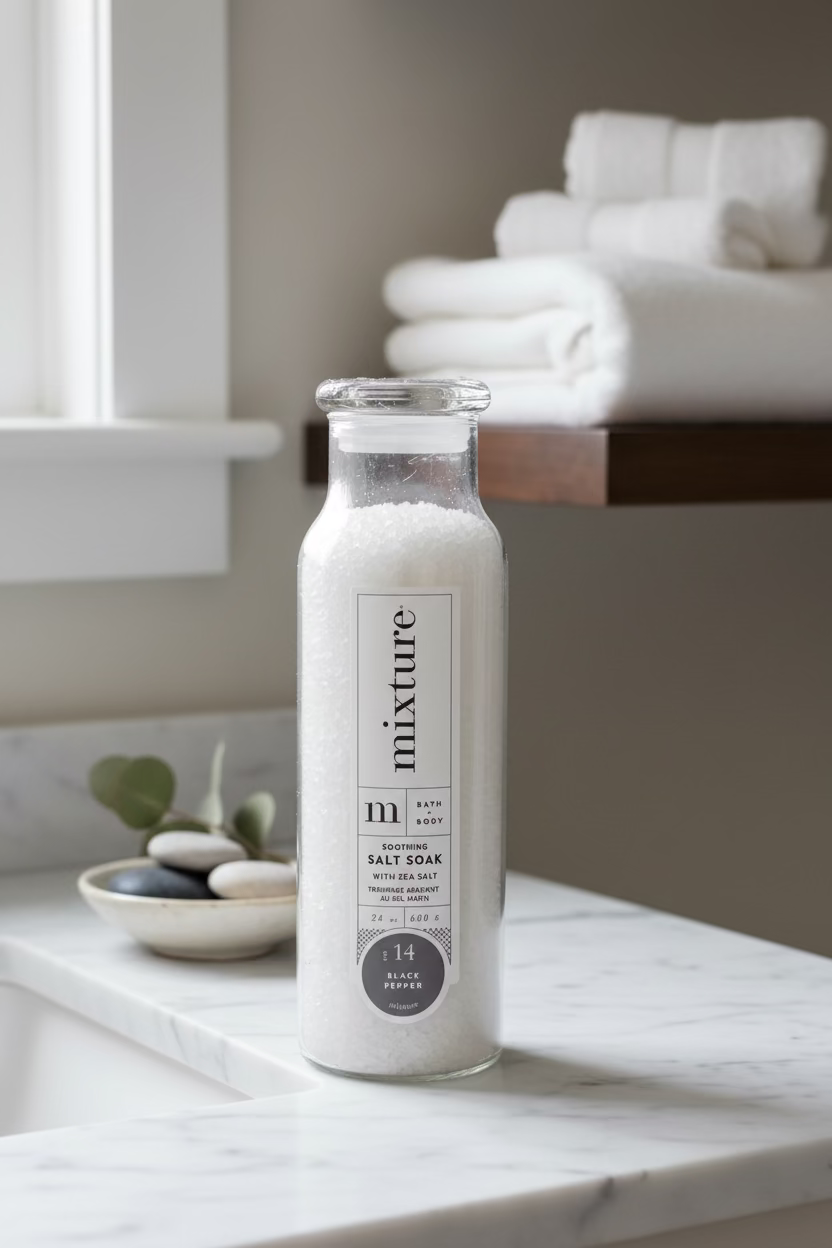 Transform your bathroom into a tropical escape with Salt Soak—your ticket to island-level relaxation without the plane ticket! This luxurious blend of mineral-rich salts and essential oils melts away muscle tension while pampering your skin with nourishing goodness. Simply sprinkle 2-3 tablespoons into warm running water and let the magic happen. It's like bringing a slice of paradise home. 24 oz.