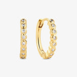 Brighten your everyday style with these vibrant, modern huggie earrings. Crafted from durable 18k gold-plated (or rhodium-plated) 925 sterling silver, each hoop features a row of handset, facet-cut zirconia for a playful yet refined sparkle. Lightweight, comfortable, and full of personality, they’re the perfect way to add elegance to any look.