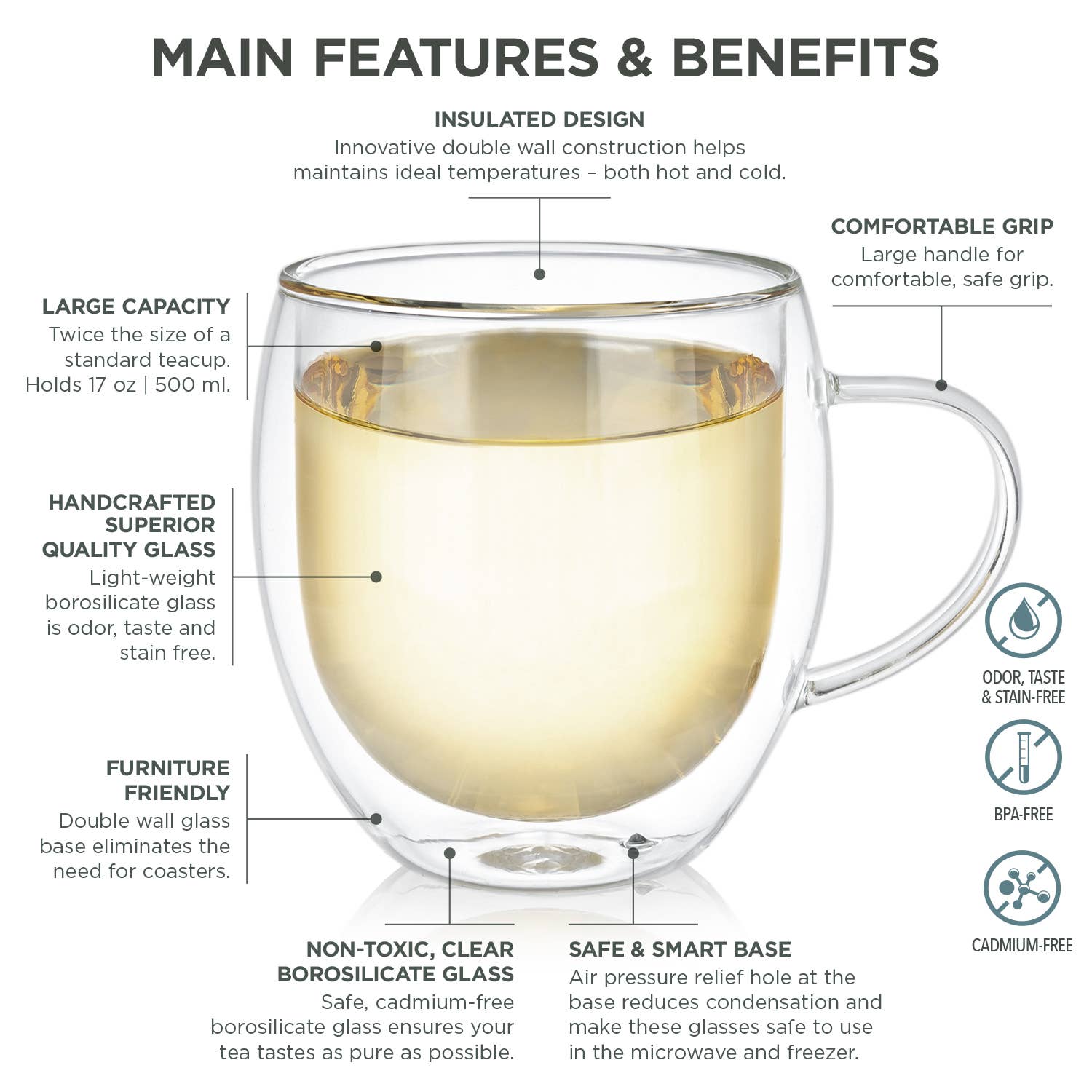 Teabloom Oversized Insulated Borosilicate Glass Mugs -17 oz